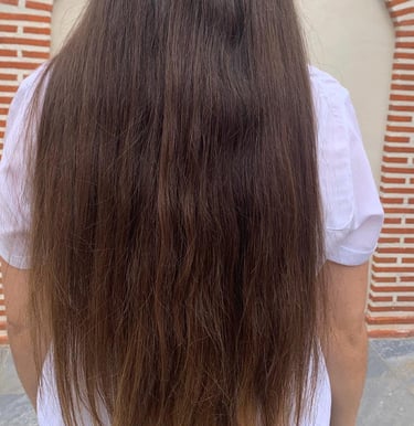 Danae tenía el pelo tan dañado que había hasta perdido sus rizos. Con la rutina adecuada, le hemos devuelto los rizos y hemos reparado el daño. ¡Y se tiñe todos los meses!
